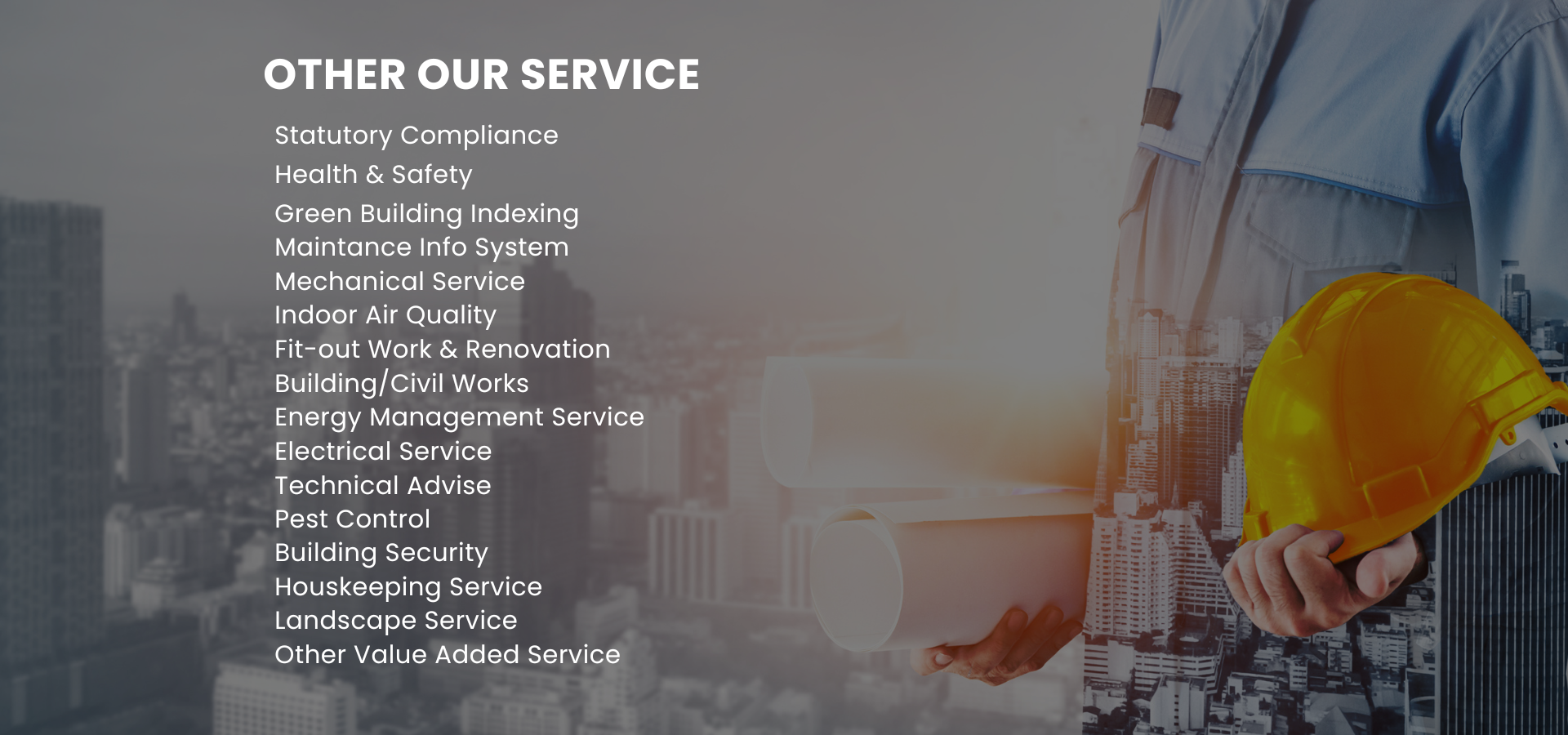 We are an integrated facilities management (IFM) services company in Malaysia for buildings and facilities maintained by the Division for Government, Commercial and Healthcare sectors. The services are Facility Engineering Maintenance Services, Biomedical Engineering Maintenance Services, Cleansing Services, Linen & Laundry Services, Healthcare Waste Management Services, Ground & Landscape Services and Pest Control Services. Our extensive portfolio in facility services and integrated facilities management has solidified our position as one of the top facilities management companies in the country.